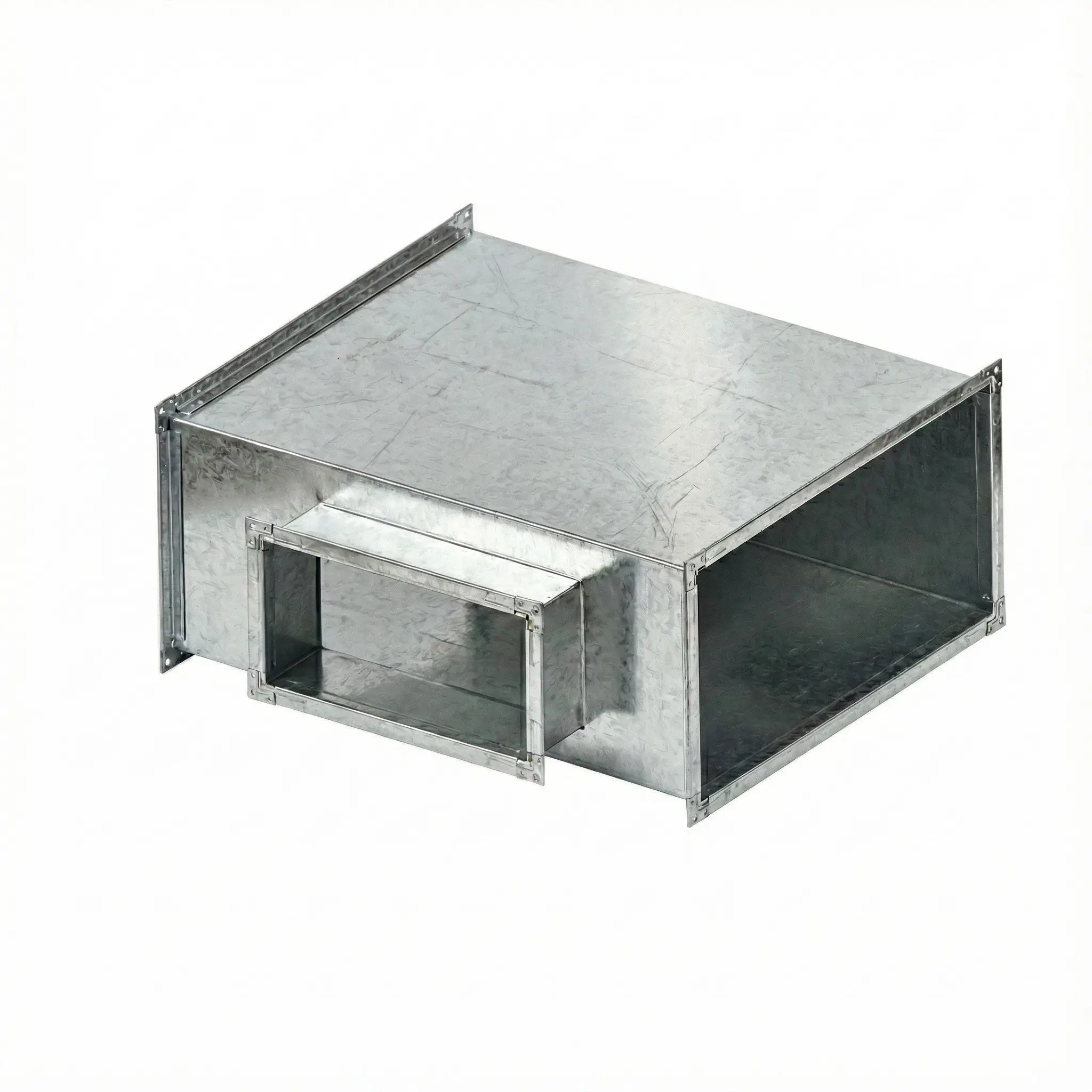 Прямоугольный стальной оцинкованный тройник с фланцами и прямоугольной врезкой