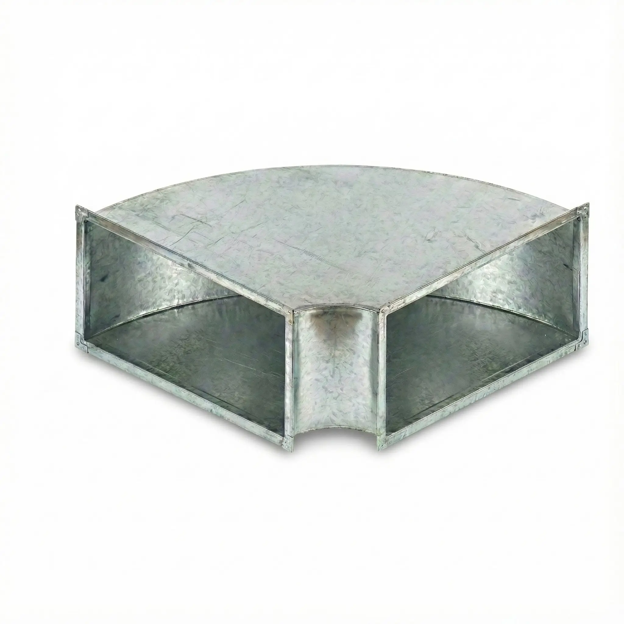 Прямоугольный отвод радиусного типа предназначен для изменения направления движения воздушного потока в системах общеобменной вентиляции и кондиционирования. Изделие применяется в магистральных участках вентиляционных сетей, где предъявляются повышенные требования к аэродинамике и уровню шума.